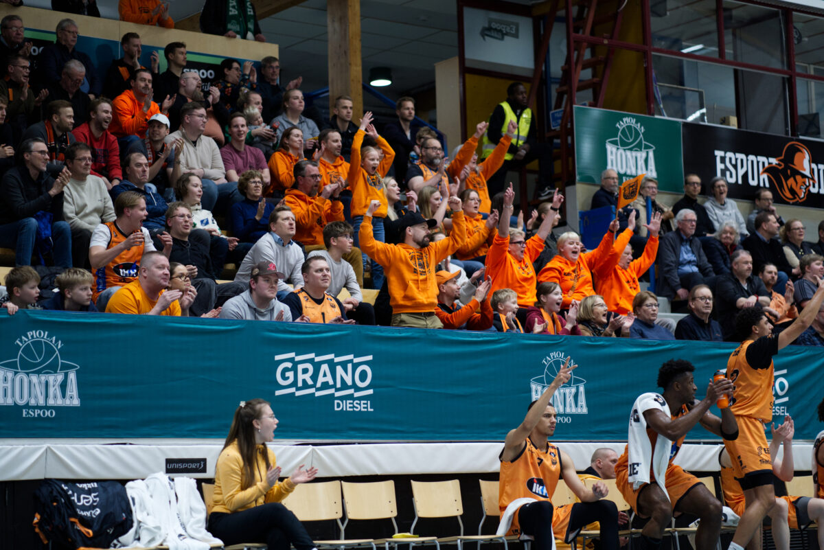 Vähissä olivat Karhubasketin ja fanijoukon ilonhetket tiistaina (kuva: Janne Yli-Korhonen)