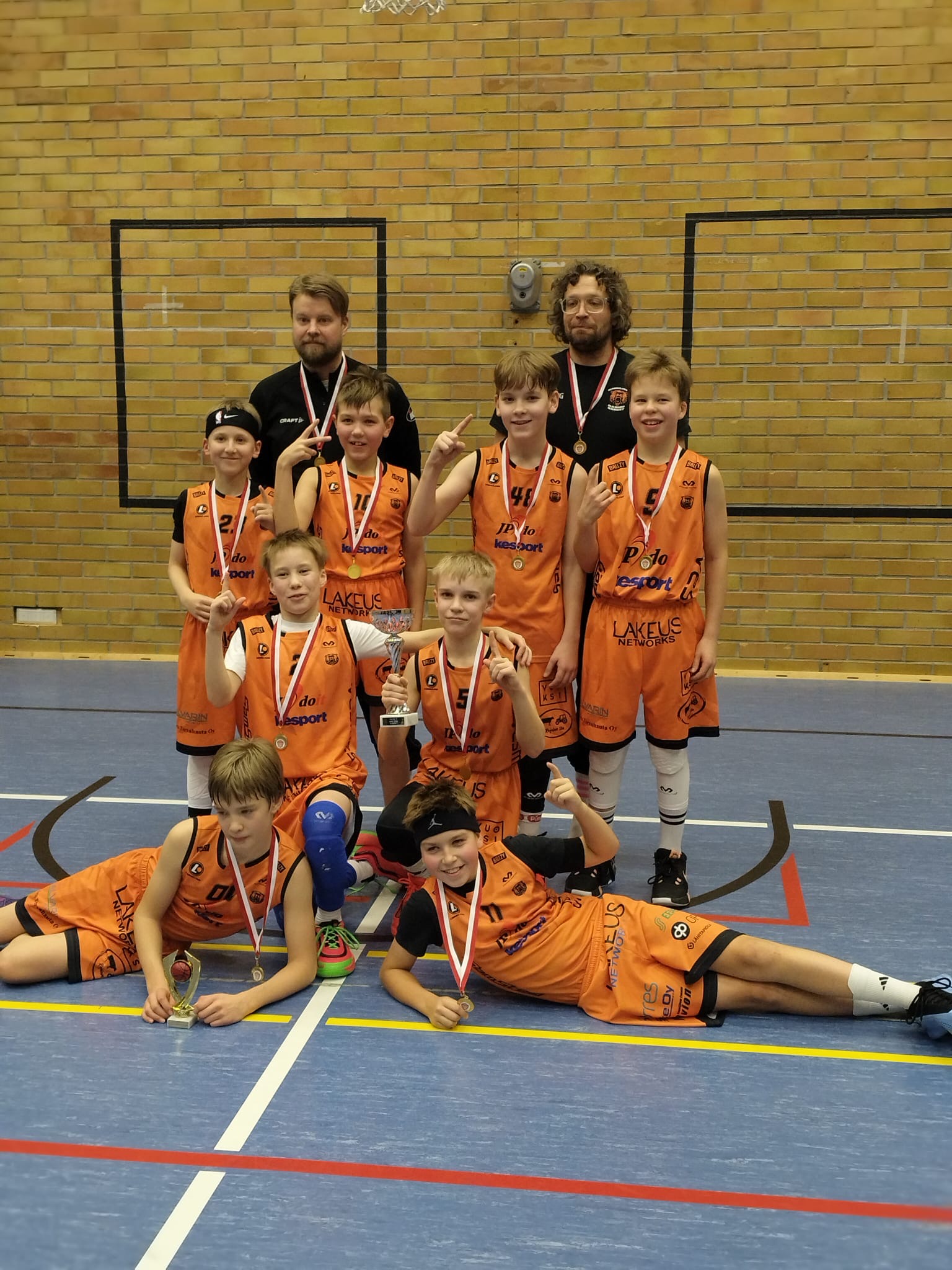 U10 kilpa. Takana valmentaja Riku-Matti Hauta. Takarivi vas Eino Rantamäki, Vili Äijö, Joona Hauta, Luca Mäki-Heikkilä, Juho Alahonko. Edessä vas Konsta Kaura, Leo Heino
