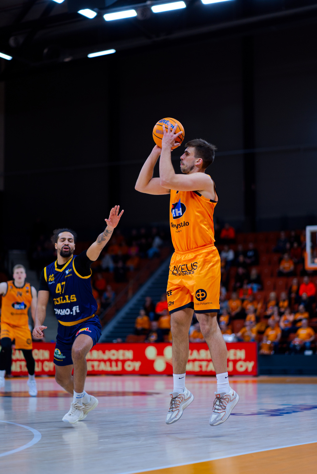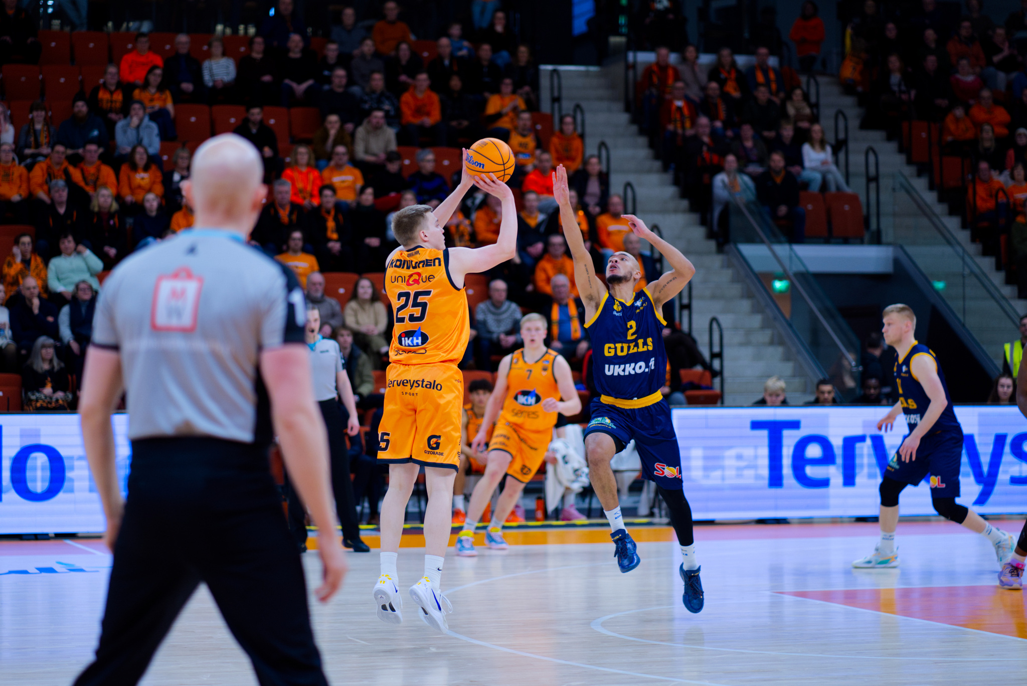 Vieraista Jalen Henry (19/7/3) ja peräti 38 minuuttia pelannut Christian Keeling (19/5/2/4 riistoa) tekivät 19 pistettä mieheen ja Trey Niemi (15/5/3) säesti kaksikkoa 15 pinnalla. Muut pysyivät kotijoukkueen puolustuksen pihdeissä.