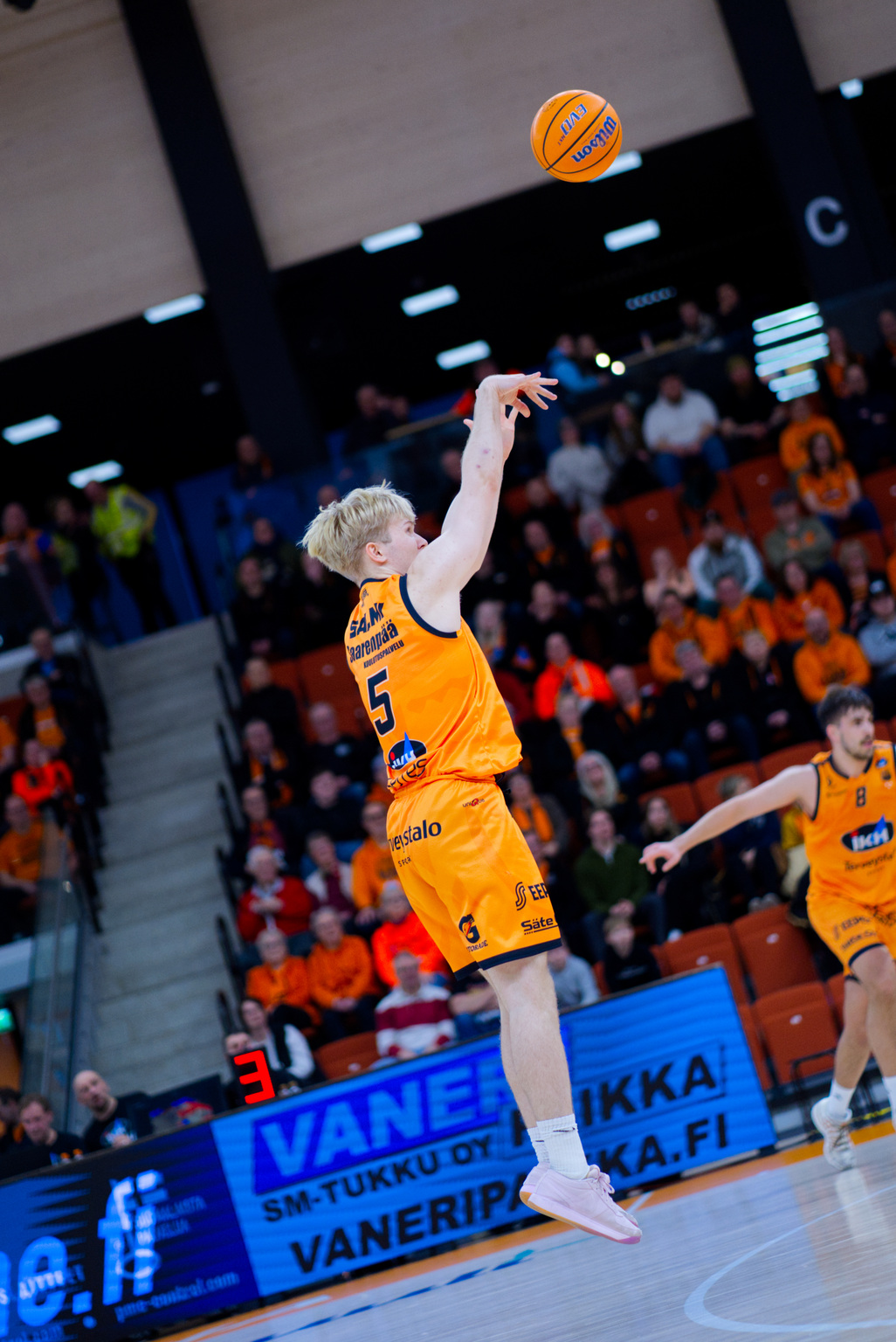 Kauhajokiset pitelivät johtoasemaa läpi kolmannen neljänneksen, mutta ratkaisevaa iskua ei pystytty antamaan. Riku Korhonen (17/3/2) tuotti vaikeuksia kotijoukkueen puolustukselle. Ratkaisu nähtiin päätöskympin alkupuolella, kun isännät nykäisivät 8-0 jakson, joka muokkasi tilanteeksi 73-61. Loukkaantumisen jälkeen kentälle palannut Skyler Flatten (25/1) teki ottelun toisella puolikkaalla 18 pistettä ja johdatti oranssipaidat 92-80 voittoon.