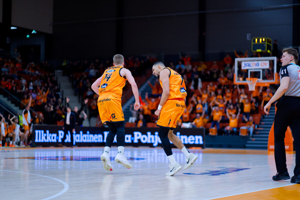 -Olimme kahdessa edellisessä ottelussa Honkaa vastaan vaikeuksissa heidän siirtymäpelin kanssa, valmentaja Risto-Matti Rousku aloitti pelin analysoinnin. Olimme nyt paljon kurinalaisempi levypallojen jälkeen, emmekä päästäneet heitä vauhtiin. Kun meillä on nyt molemmat takamiehet (Salmi ja Aidoo) takaisin kokoonpanossa, niin menetyksiä tulee vähemmän. Tämä tuo Hongalle vähemmän mahdollisuuksia juosta. Pystyimme pakottamaan heidät viisi vastaan viisi pelaamiseen. Saimme tänään hyviä kaukoheittopaikkoja suoraan syötöistä, kun aikaisemmin mukana on ollut pakotettuja heittoja. Niiden jälkeen emme ole hyvissä asemissa hyökkäyslevypalloihin tai siirtymäpuolustukseen. Tavoitteena on, että Ike (Nweke) on mukana, kun pudotuspelit alkavat ensi viikon alkupuolella, Rousku kertoi.