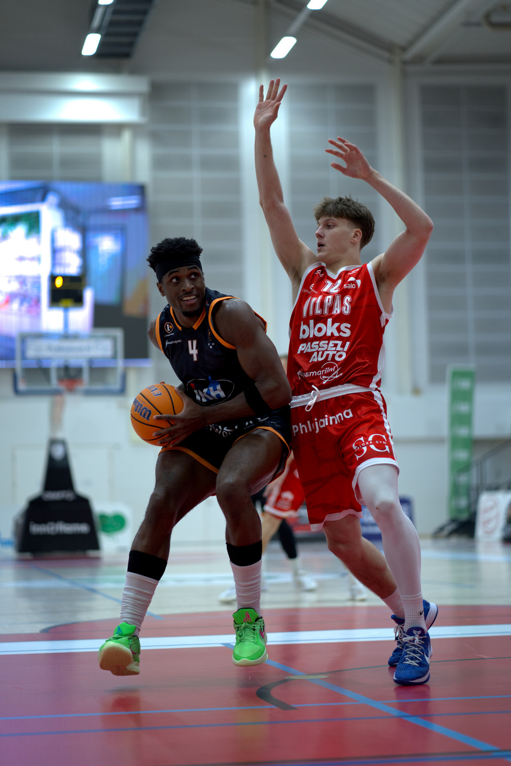 Vilpas sai kaukoheittopelinsä kulkemaan. Mikko Koivisto (16/5/2) ja Ansley Almonor (10/7) veivät salolaiset 33-36 johtoon, kun matkaa puoliaikaan oli kolmisen minuuttia. Christian Davisin (9/8/4) kolmonen ja Ike Nweken (16/11/4) vaparit tasoittivat puoliaikalukemiksi 40-40.